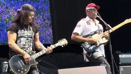 GUNS N’ ROSES guitarist Slash joined RAGE AGAINST THE MACHINE guitarist Tom Morello on stage this past Thursday (June 15) at the Graspop Metal Meeting in Dessel, Belgium to perform the song “Interstate 80”. Fan-filmed video of his appearance can be seen below.