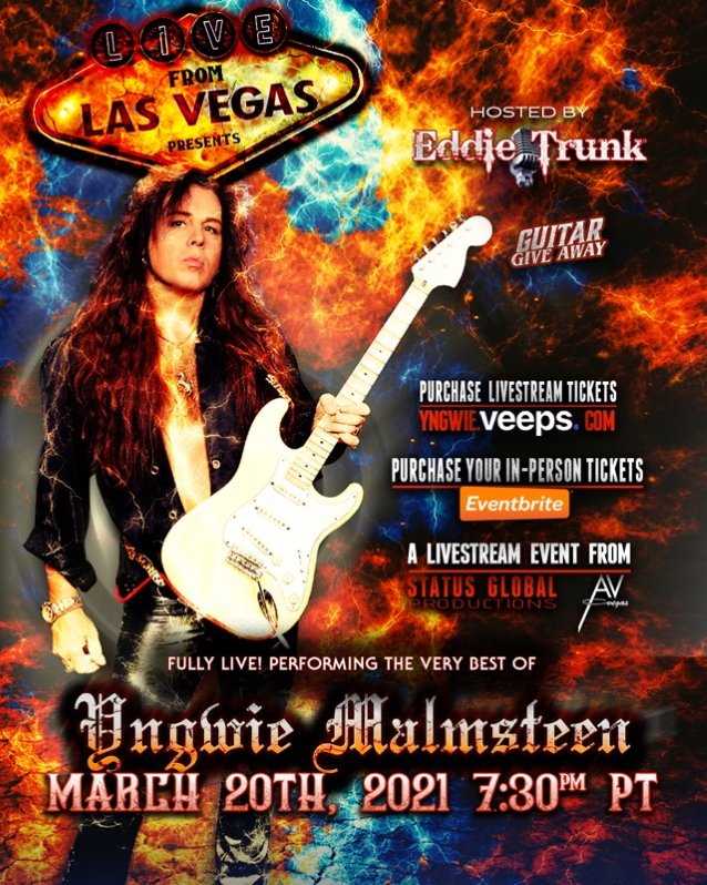 On March 20 at 7:30 p.m. PT, legendary Swedish guitarist Yngwie Malmsteen will take part in a one-night only exclusive livestream event — complete with full, live band — from the entertainment capital of the world, Las Vegas, Nevada.